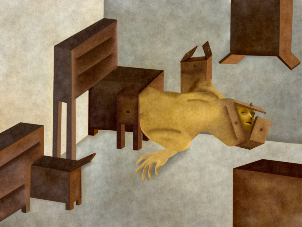 The Kistea is a flexible creature with a soft body, protected by hard, box-like outer structures. It usually hides within these wooden enclosures and only emerges occasionally. At times, one of these box-like parts detaches from its body and becomes part of its environment, serving as an additional hiding place the Kistea can move into and out of. It’s living space becomes littered with these structures till all you see are these wooden boxes.